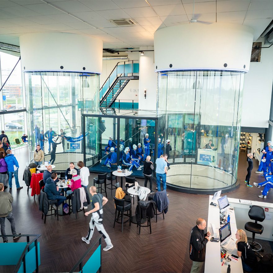 Wij zijn het eerste indoor skydivecentrum in de wereld met twee windtunnels. In een veilige omgeving, onder begeleiding van onze gecertificeerde instructeurs, kun je als recreant vlieger een vrije val ervaren. Alsof je op 4000 meter hoogte uit een vliegtuig springt, maar dan zonder ook daadwerkelijk uit het vliegtuig te hoeven springen. De meer ervaren sportvliegers kunnen bij ons terecht voor hun (team-) training en het verbeteren van hun skills in onze state of the art windtunnels.